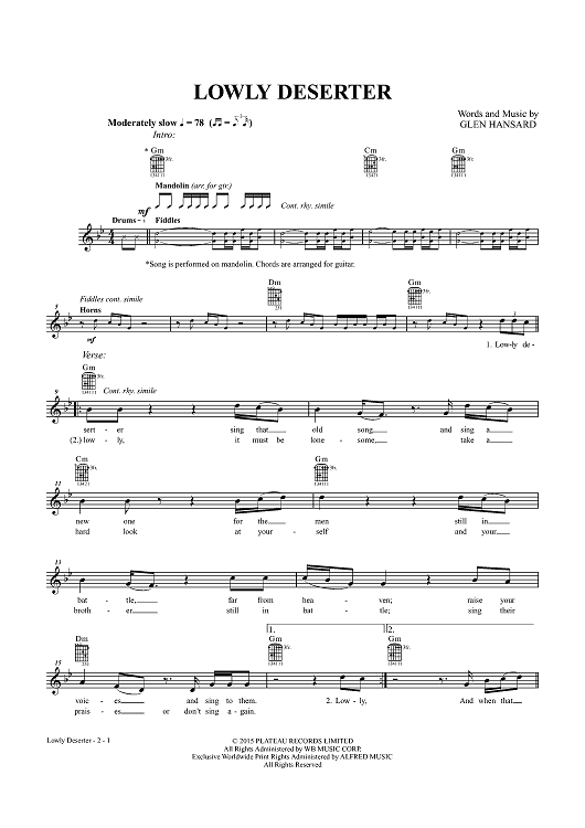 "Lowly Deserter" Sheet Music by Glen Hansard