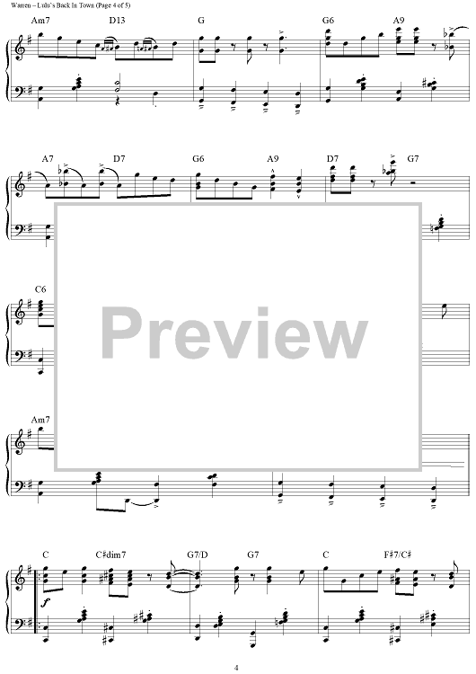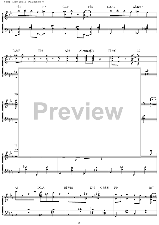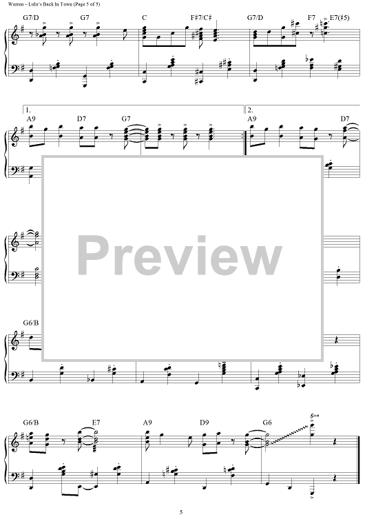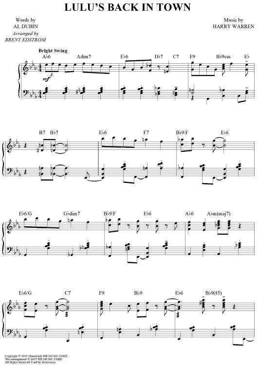 Digital Sheet Music for Lulu's Back In Town by Harry Warren, Al Dubin, Brent Edstrom scored for Piano Solo; id:460320