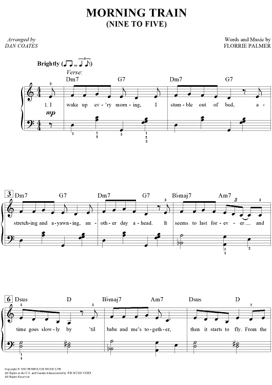 Digital Sheet Music for Morning Train (Nine to Five) by Dan Coates, Florrie Palmer scored for Easy Piano/Vocal/Chords; id:454187