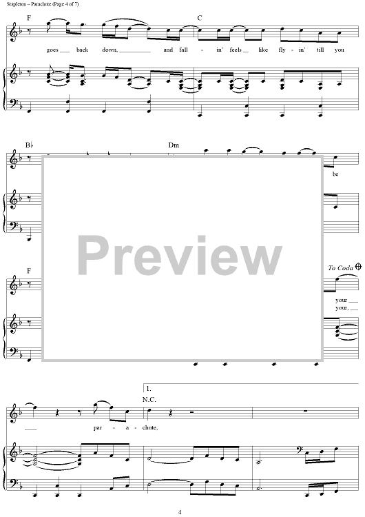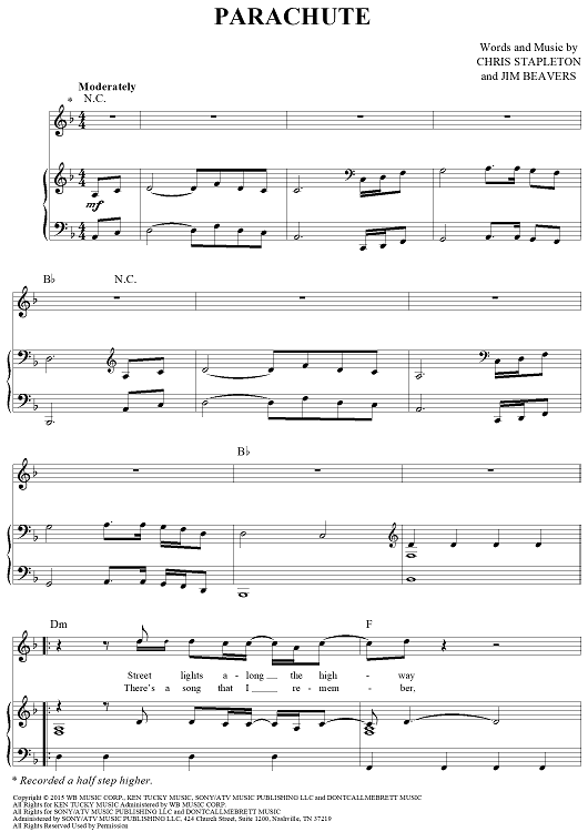 Digital Sheet Music for Parachute by Jim Beavers, Chris Stapleton scored for Piano/Vocal/Chords; id:464291