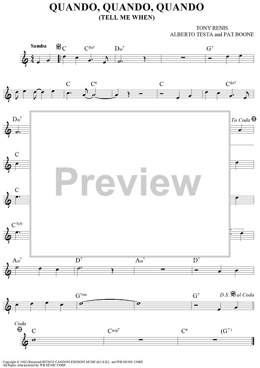 Digital Sheet Music for Quando, Quando, Quando (Tell Me When) by Pat Boone, Tony Renis, Alberto Testa scored for Lead Sheet; id:456579