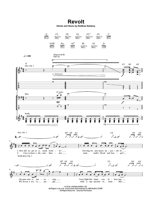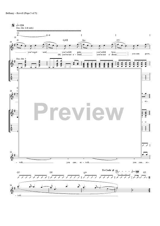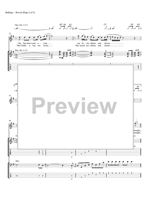 Digital Sheet Music for Revolt by Matthew Bellamy, Muse scored for Guitar Tab; id:453043