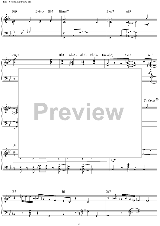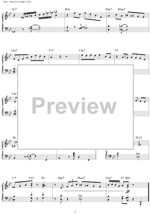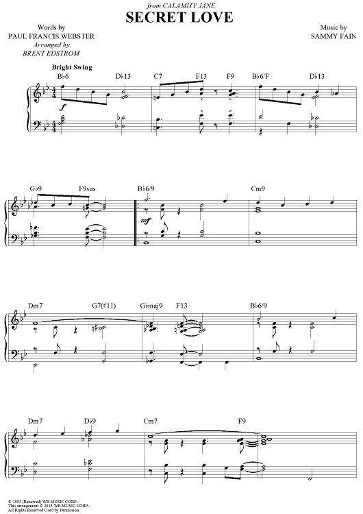 Digital Sheet Music for Secret Love by Sammy Fain, Paul Francis Webster, Brent Edstrom scored for Piano Solo; id:460339