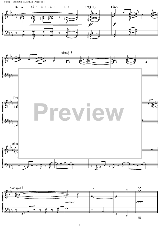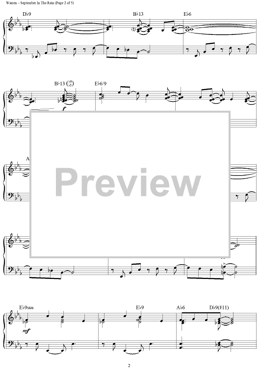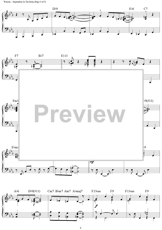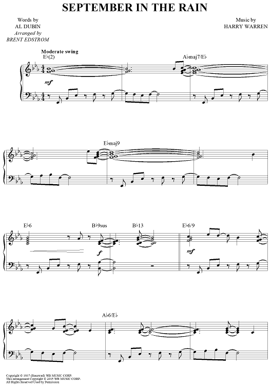 Digital Sheet Music for September in the Rain by Harry Warren, Al Dubin, Brent Edstrom scored for Piano Solo; id:459497