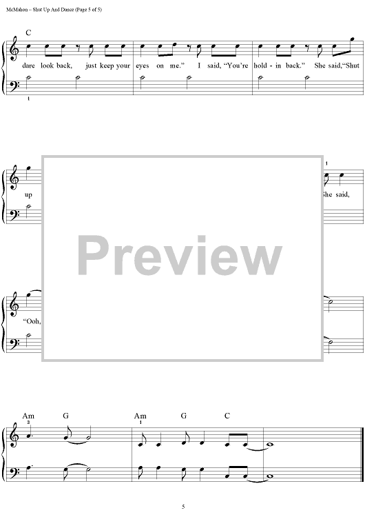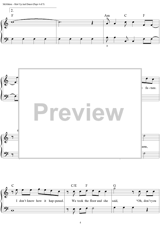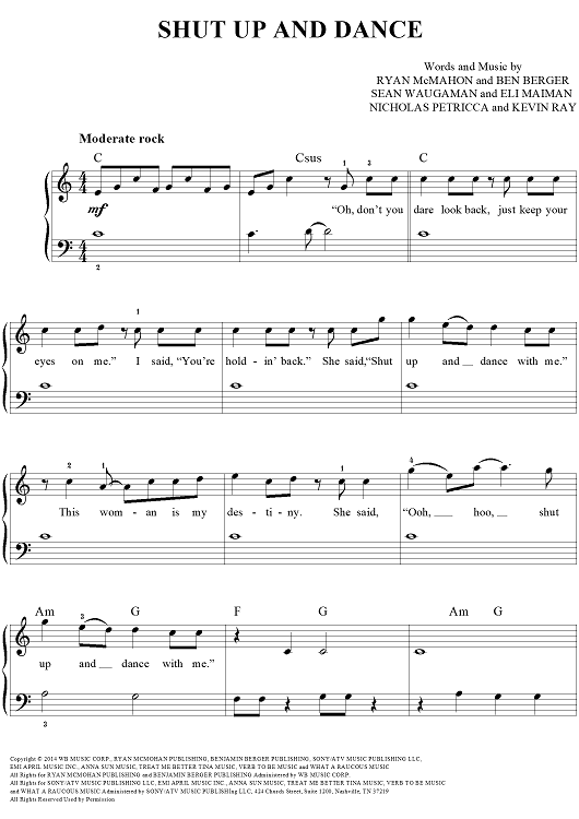 Digital Sheet Music for Shut Up and Dance by Ryan McMahon, Ben Berger, Sean Waugaman, Eli Maiman, Nicholas Petricca, Kevin Ray, Walk the Moon scored for Easy Piano/Vocal/Chords; id:453395