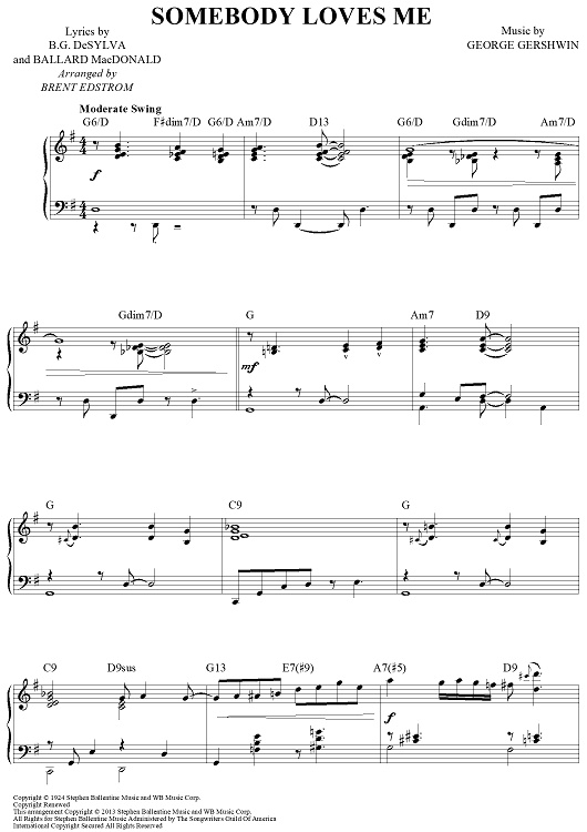 Digital Sheet Music for Somebody Loves Me by George Gershwin, Ballard MacDonald, Buddy DeSylva, Brent Edstrom scored for Piano Solo; id:462446