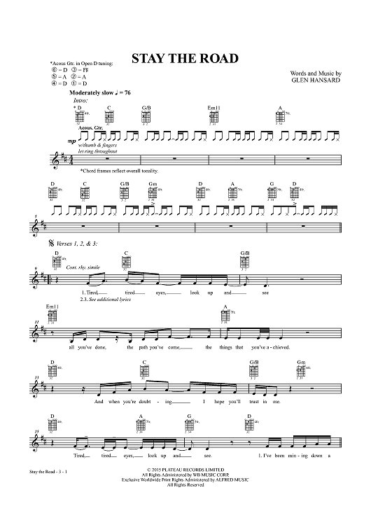 "Stay the Road" Sheet Music by Glen Hansard