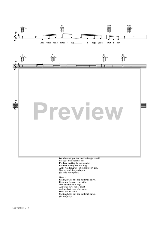 Digital Sheet Music for Stay the Road by Glen Hansard scored for Guitar Tab/Vocal/Chords; id:454150