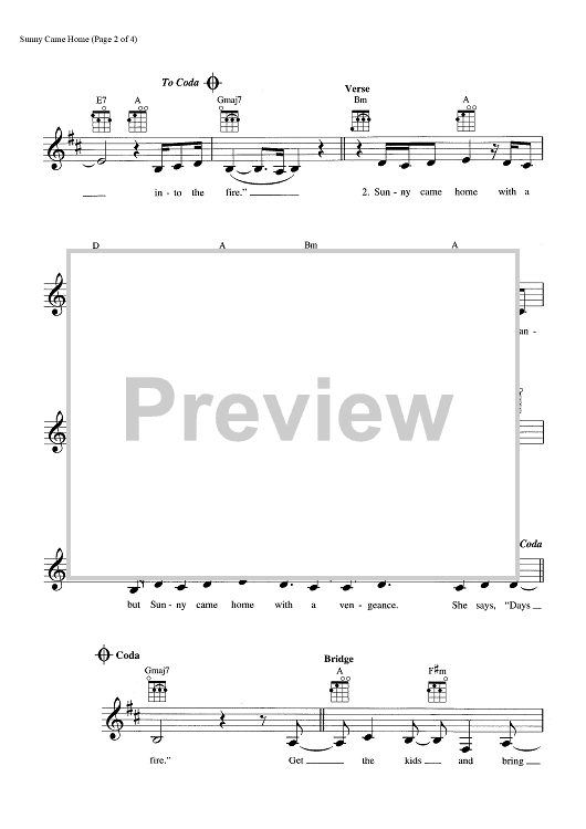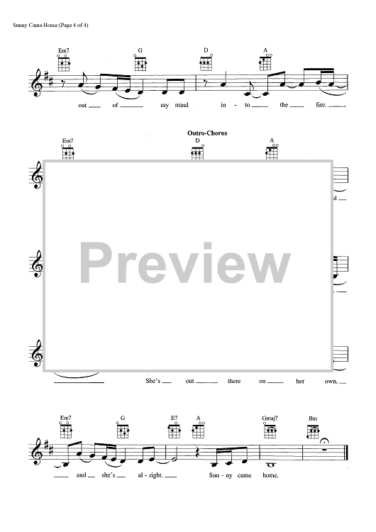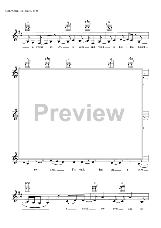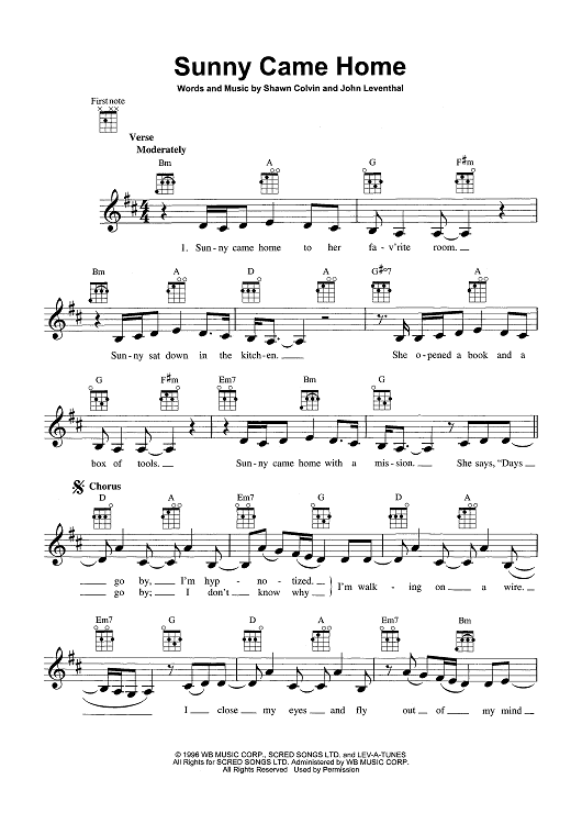 Digital Sheet Music for Sunny Came Home by Shawn Colvin, John Leventhal scored for Ukulele/Vocal; id:465389