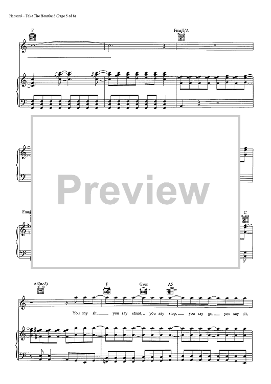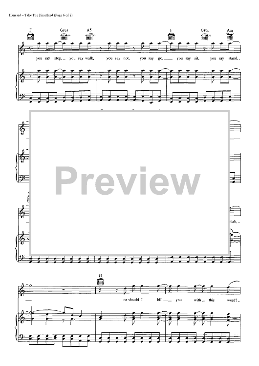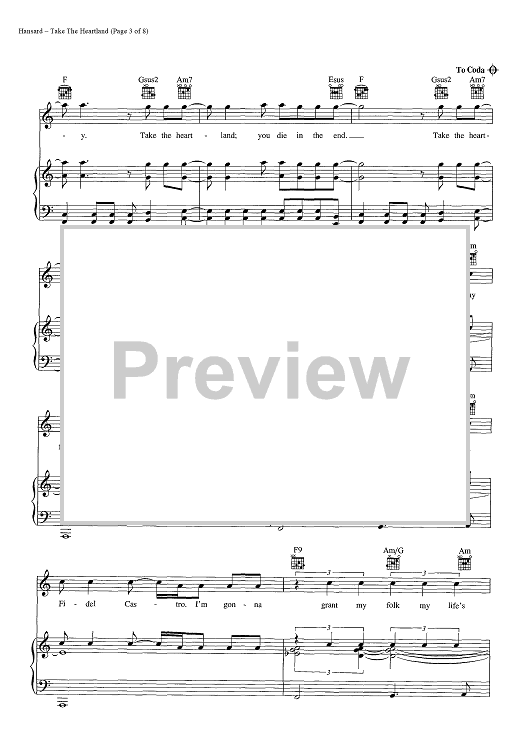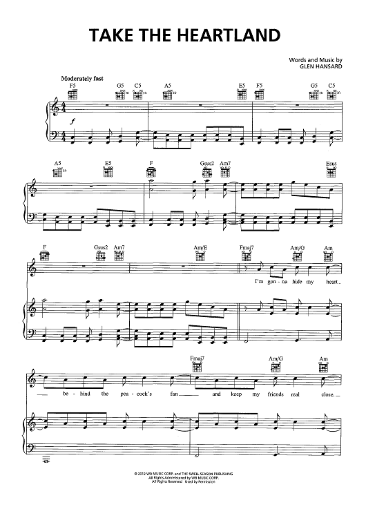 Digital Sheet Music for Take the Heartland by Glen Hansard scored for Piano/Vocal/Chords; id:445242