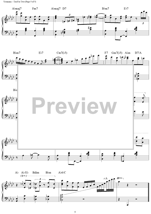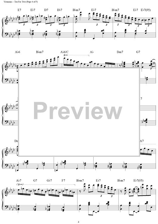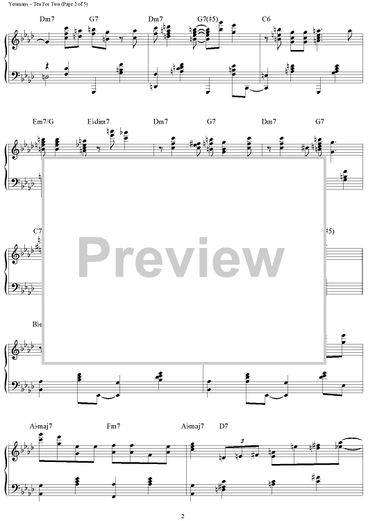 Digital Sheet Music for Tea For Two by Irving Caesar, Vincent Youmans, Brent Edstrom scored for Piano Solo; id:460323