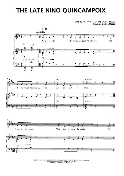 Digital Sheet Music for The Late Nino Quincampoix - from Amélie by Nathan Tysen, Daniel Messé scored for Piano/Vocal/Chords; id:466158