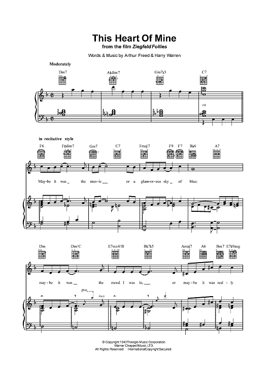Digital Sheet Music for This Heart Of Mine - from the film Ziegfeld Follies by Harry Warren, Arthur Freed scored for Piano/Vocal/Chords; id:434645