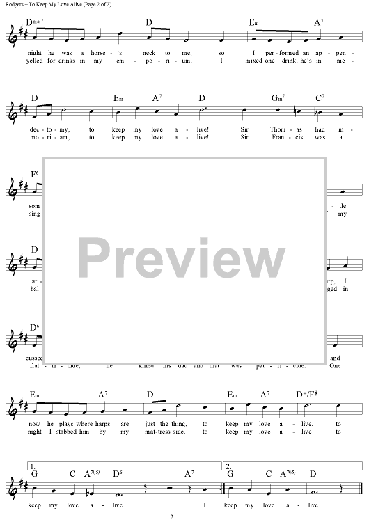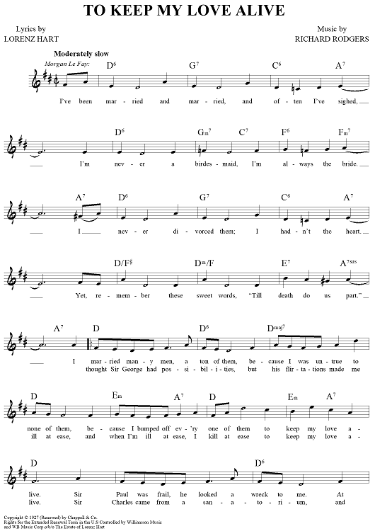 Digital Sheet Music for To Keep My Love Alive by Richard Rodgers, Lorenz Hart scored for Lead Sheet; id:442513
