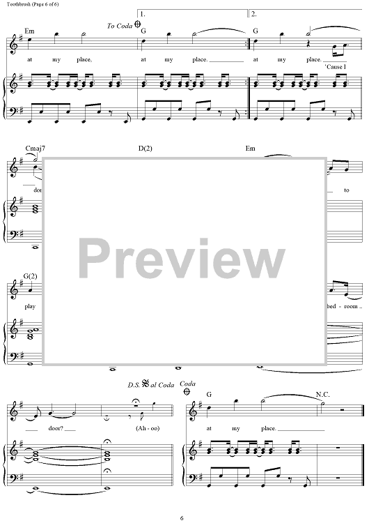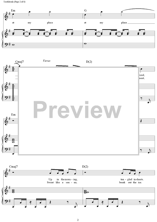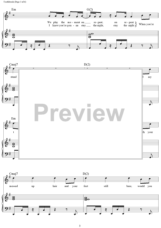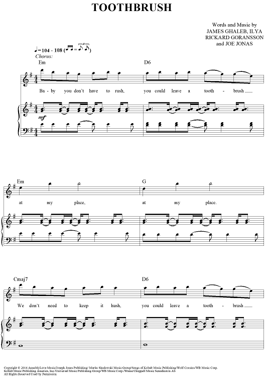 Digital Sheet Music for Toothbrush by Joseph Jonas, Rickard Göransson, DNCE, James Ghaleb scored for Piano/Vocal/Chords; id:459967