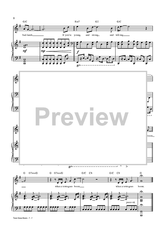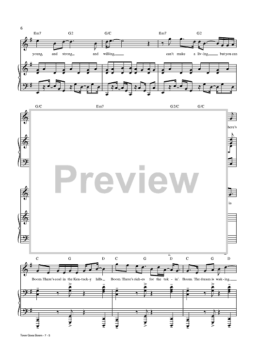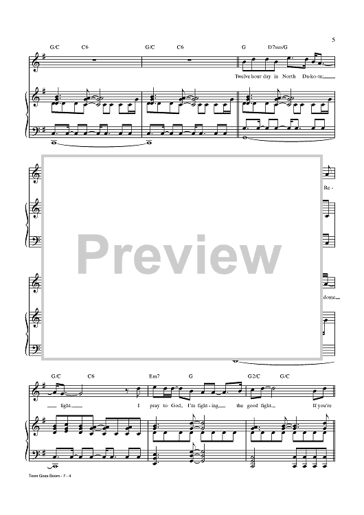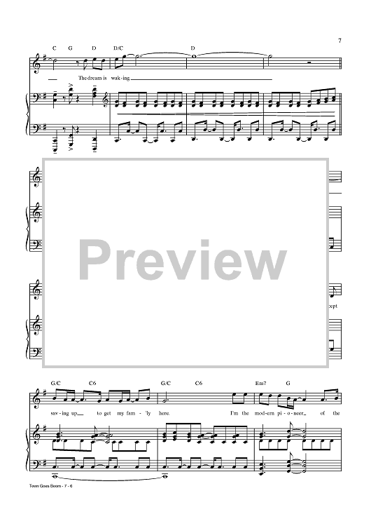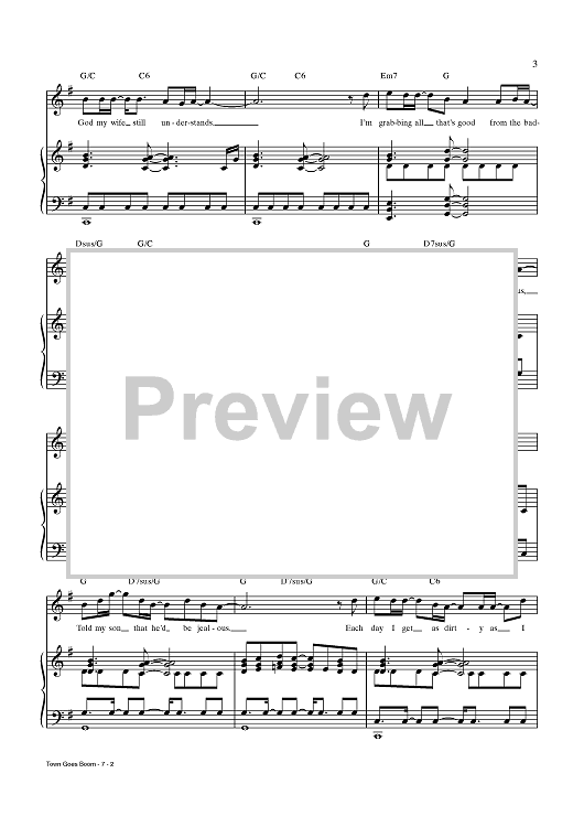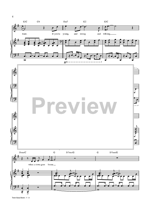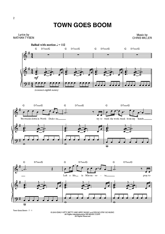Digital Sheet Music for Town Goes Boom by Chris Miller, Nathan Tysen, Jay Armstrong Johnson scored for Piano/Vocal/Chords; id:437636