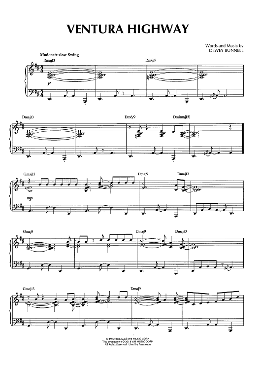 "Ventura Highway" Sheet Music by Dewey Bunnell