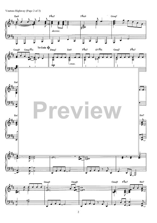 Digital Sheet Music for Ventura Highway by Dewey Bunnell, Brent Edstrom scored for Piano Solo; id:466386