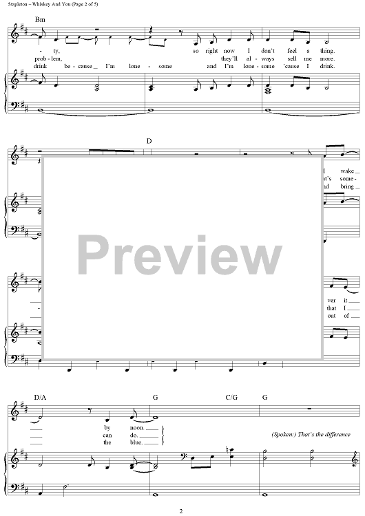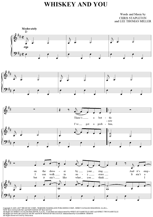 Digital Sheet Music for Whiskey And You by Lee Thomas Miller, Chris Stapleton scored for Piano/Vocal/Chords; id:464207