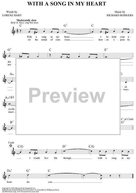 Digital Sheet Music for With A Song In My Heart by Richard Rodgers, Lorenz Hart scored for Lead Sheet; id:457452