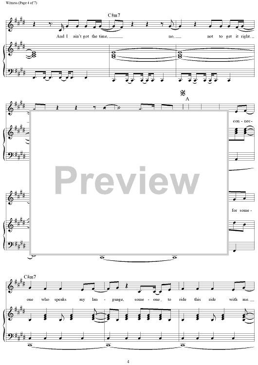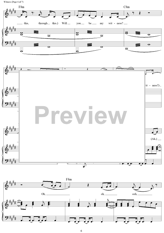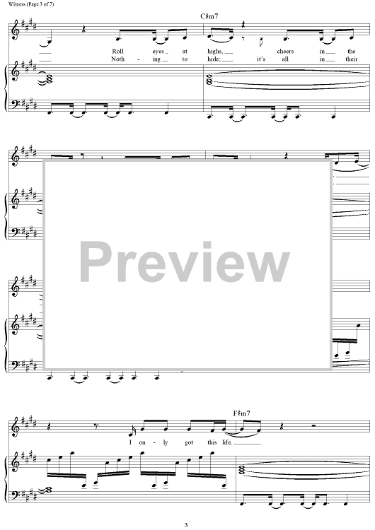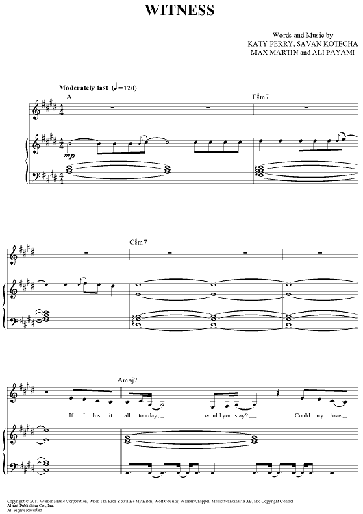 Digital Sheet Music for Witness by Max Martin, Savan Kotecha, Katy Perry, Ali Payami scored for Piano/Vocal/Chords; id:465289