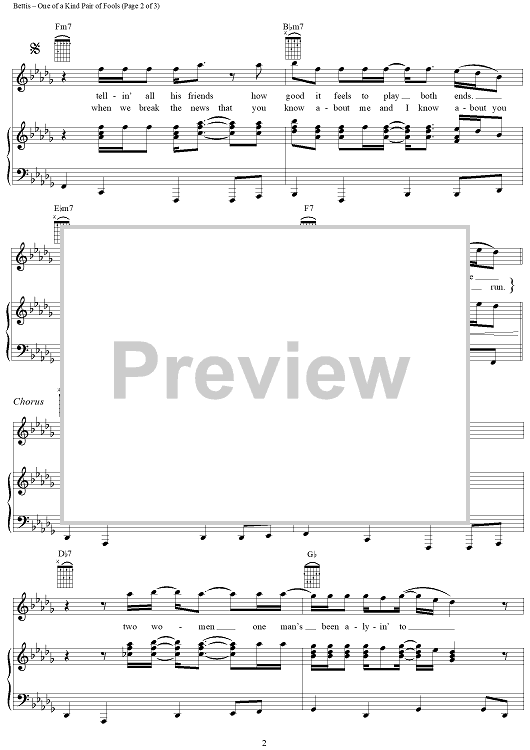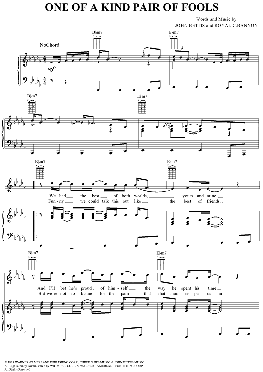 Digital Sheet Music for One of a Kind Pair of Fools by Barbara Mandrell, John Bettis, Royal C. Bannon scored for Piano/Vocal/Chords; id:275684