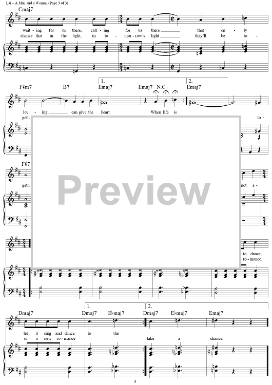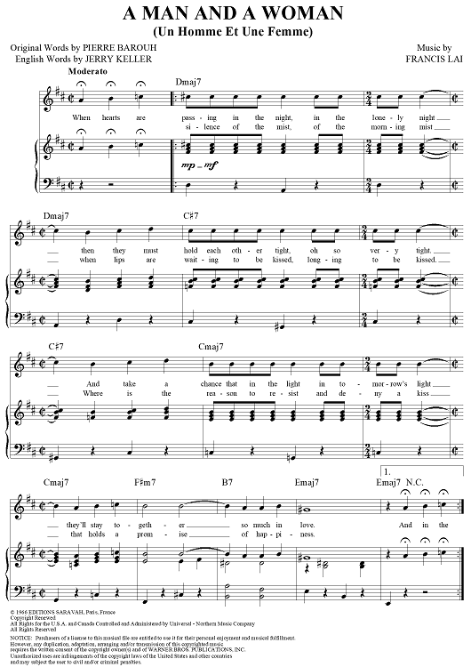 Digital Sheet Music for A Man and a Woman by Francis Lai, Pierre Barouh scored for Piano/Vocal/Chords; id:295107