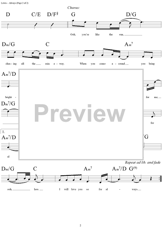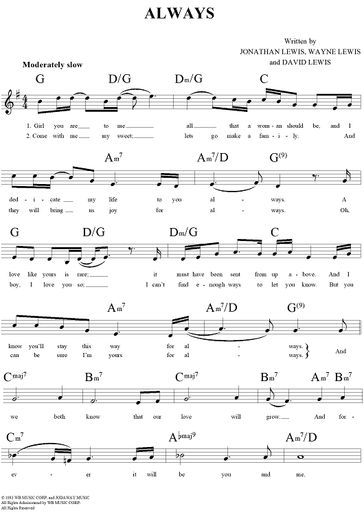 Digital Sheet Music for Always by Jonathan Lewis, Wayne Lewis, David Lewis, Atlantic Starr scored for Lead Sheet; id:119915