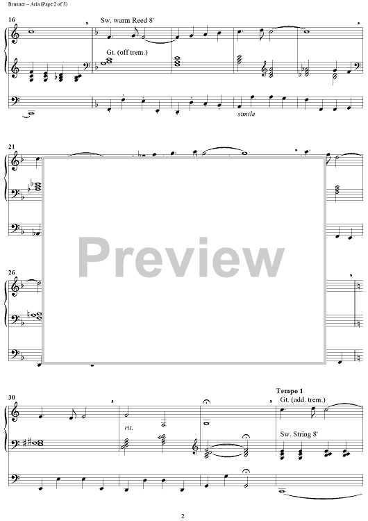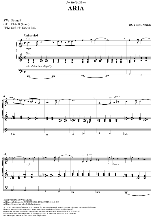 Digital Sheet Music for Aria by Roy Brunner scored for Organ Solo; id:291198