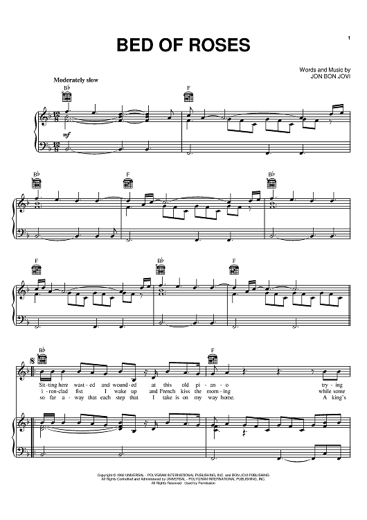 Digital Sheet Music for Bed Of Roses by Bon Jovi, Jon Bon Jovi scored for Piano/Vocal/Chords; id:383528