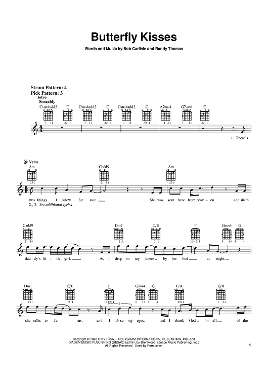 "Butterfly Kisses" Sheet Music by Bob Carlisle
