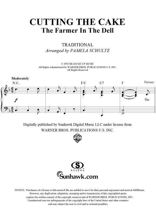 Digital Sheet Music for Cutting the Cake by Pamela Schultz, Traditional scored for Piano/Vocal/Chords; id:287135