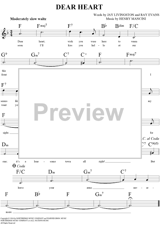 Digital Sheet Music for Dear Heart by Henry Mancini, Jay Livingston, Ray Evans scored for Lead Sheet; id:120857
