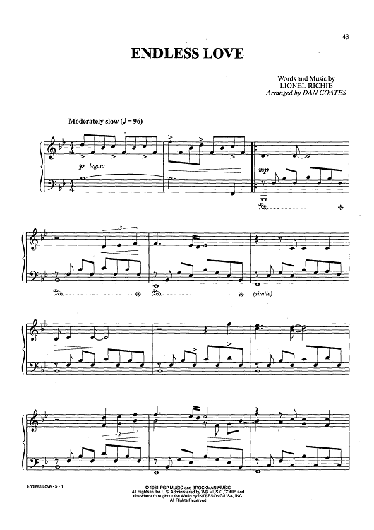 "Endless Love" Sheet Music by Lionel Richie
