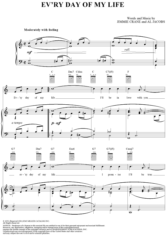 Digital Sheet Music for Ev'ry Day of My Life by Al Jacobs scored for Piano/Vocal/Chords; id:241167