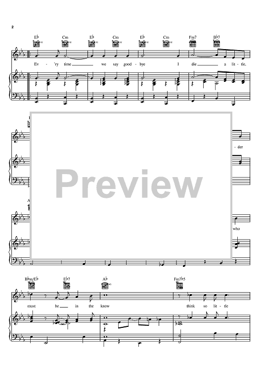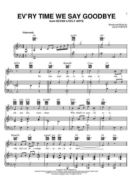 Digital Sheet Music for Ev'ry Time We Say Goodbye by Stan Kenton, Cole Porter scored for Piano/Vocal/Chords; id:368469