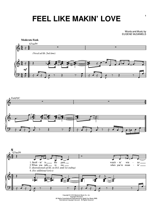 Digital Sheet Music for Feel Like Makin' Love by D'Angelo, Roberta Flack, Eugene McDaniels, Karrin Allyson scored for Piano/Vocal/Chords; id:388119