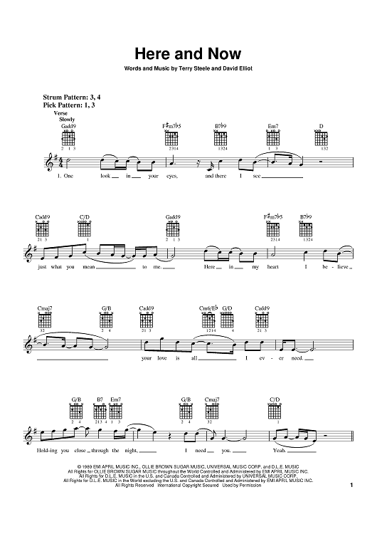 Digital Sheet Music for Here And Now by David Elliot, Luther Vandross, Terry Steele scored for Lead Sheet with Guitar Grids; id:383090