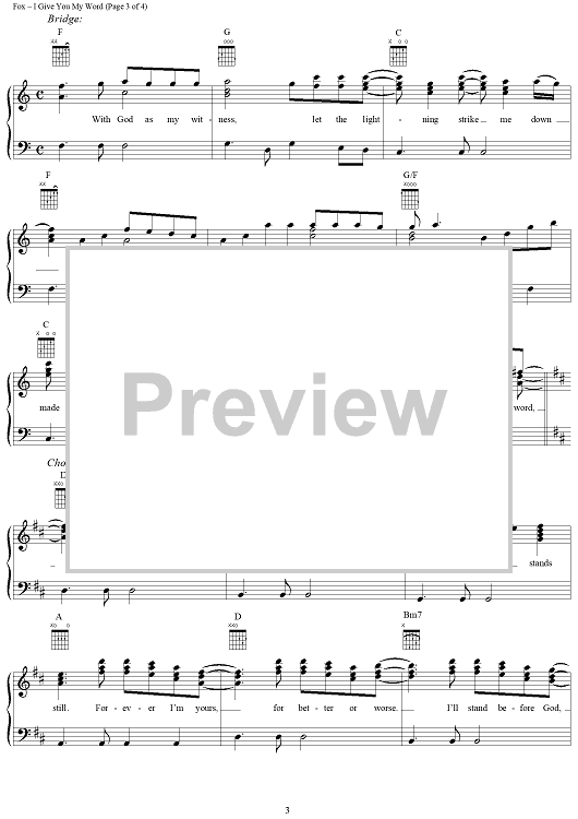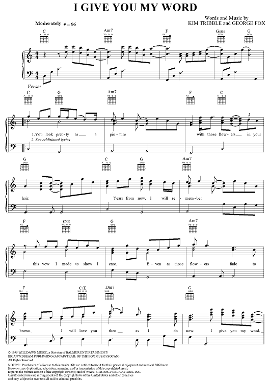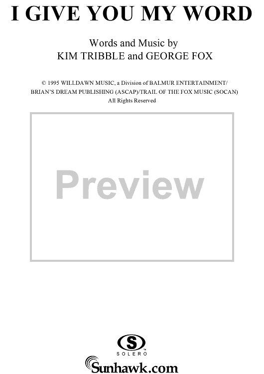 Digital Sheet Music for I Give You My Word by Kim Tribble, George Fox scored for Piano/Vocal/Chords; id:112703