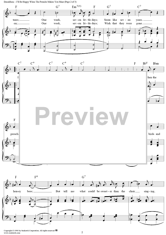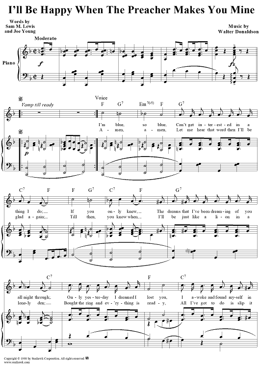 Digital Sheet Music for I'll Be Happy When the Preacher Makes You Mine by Walter Donaldson, Samuel M. Lewis, Joseph Young scored for Piano/Vocal; id:109031