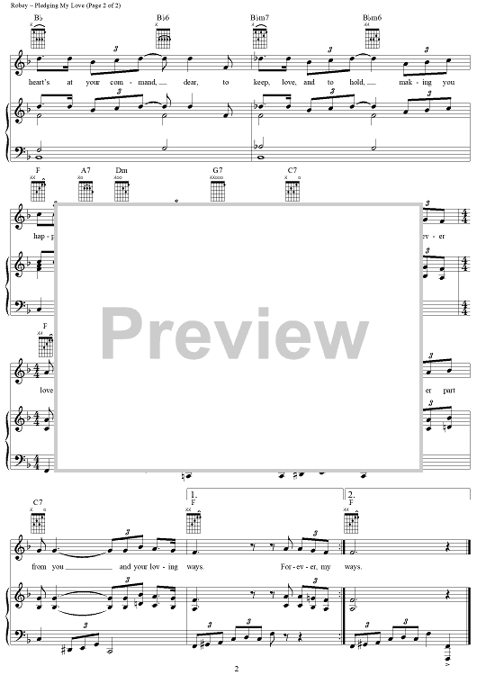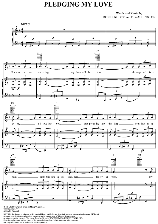 Digital Sheet Music for Pledging My Love by Don D. Robey, F. Washington scored for Piano/Vocal/Chords; id:295110