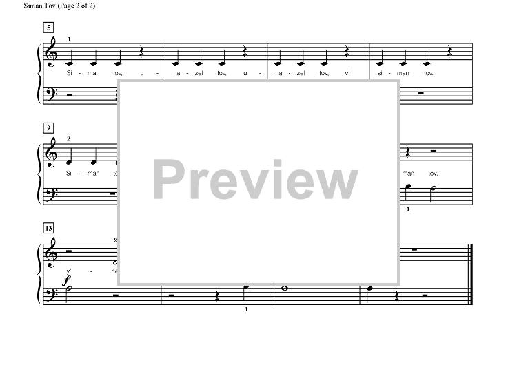 "SimanTov" Sheet Music by Yiddish Song