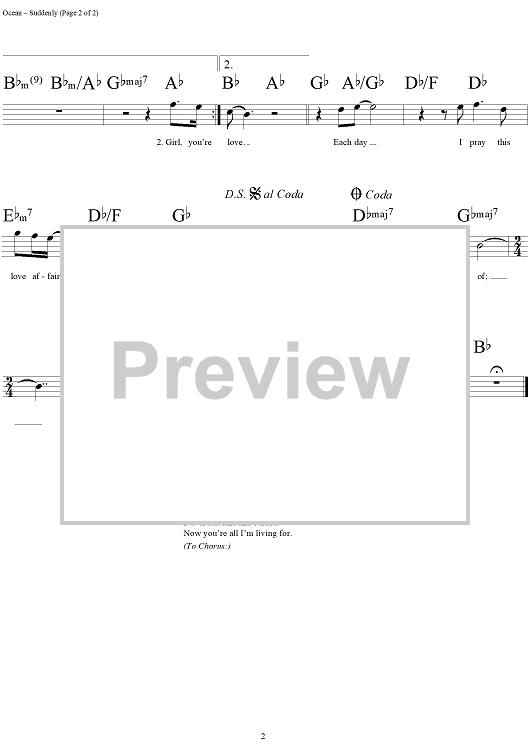 Digital Sheet Music for Suddenly by Billy Ocean, Keith Diamond scored for Lead Sheet; id:124066