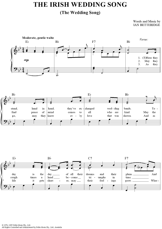 Digital Sheet Music for The Irish Wedding Song (The Wedding Song) by Ian Betteridge scored for Easy Piano/Vocal/Chords; id:360868