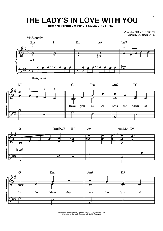 Digital Sheet Music for The Lady's In Love With You by Burton Lane, Benny Goodman, Frank Loesser scored for Easy Piano; id:388204