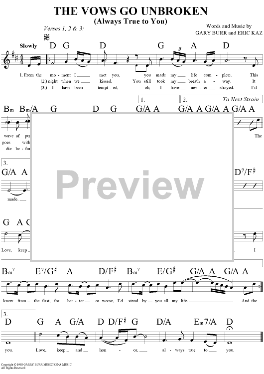 Digital Sheet Music for The Vows Go Unbroken (Always True to You) by Gary Burr, Eric Kaz scored for Lead Sheet; id:273651