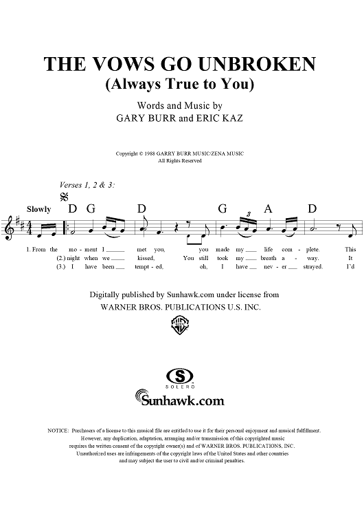 "The Vows Go Unbroken (Always True to You)" Sheet Music by Gary Burr