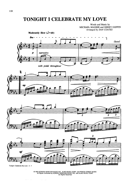 "Tonight I Celebrate My Love" Sheet Music by Michael Masser