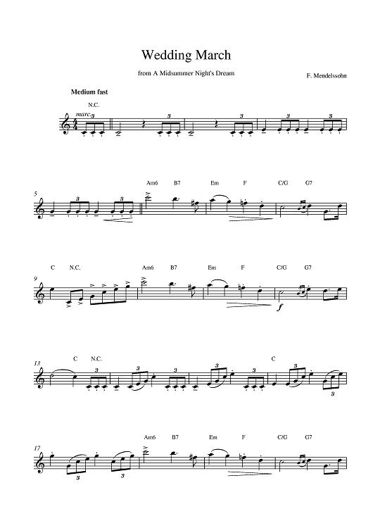 Digital Sheet Music for Wedding March by Felix Mendelssohn scored for Lead Sheet; id:380697
