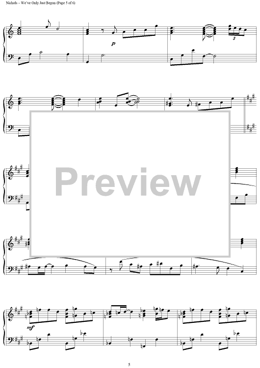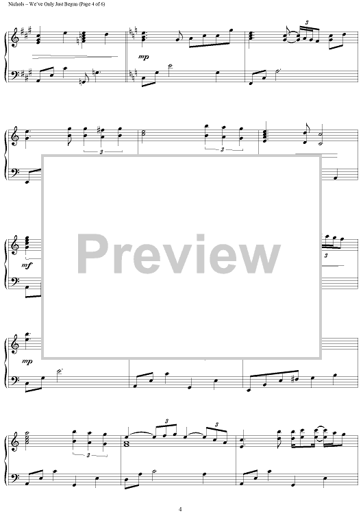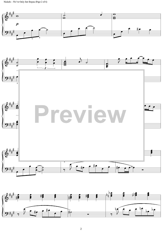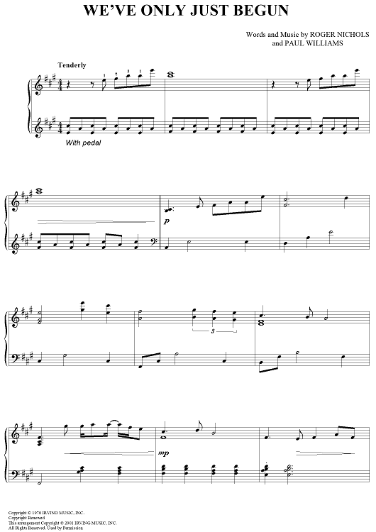 Digital Sheet Music for We've Only Just Begun by The Carpenters, Roger Nichols, Paul Williams scored for Piano Solo; id:367442